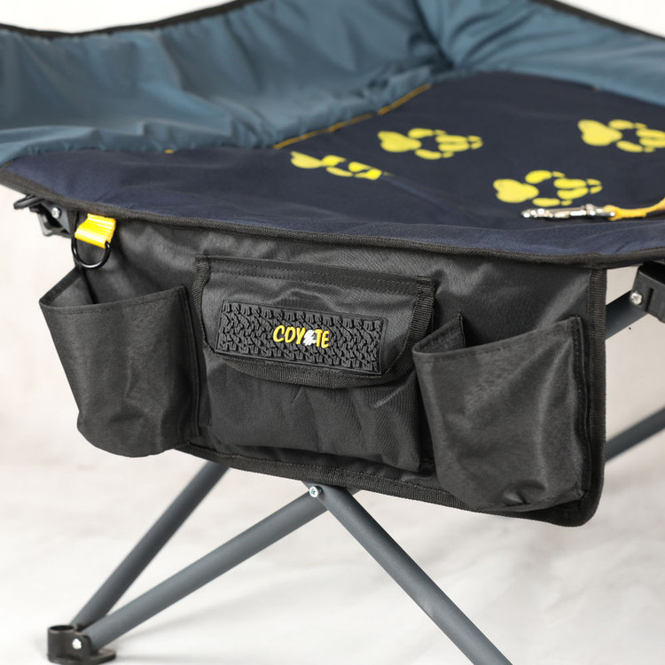 محصولی کاربردی برای کسانی که با حیوان خانگی سفر میکنند. این تخت از پارچه ی ریپ استاپ که ضد اب و ضد خراش است تهیه شده و تحمل وزن ان 130 کیلوگرم می باشد. این تخت به صورت تاشو و قابل حمل می باشد. دارای قلاب مخصوص قلاده حیوانات است و 3 جیب برای نگهداری وسایل روی این کیف تعبیه شده است. ابعاد باز شده ی این محصول 90 در 110 سانتی متر با ارتفاع 40 سانتی متر می باشد. در این تخت ابری با ضخامت 1 سانتی متر کار شده و زیر کار تسمه های تقویت کننده استفاده شده است.